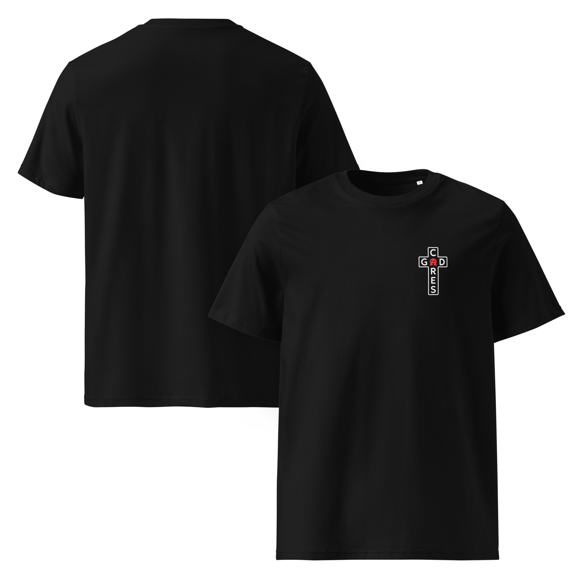 God Cares: Small Front – Unisex Organic Cotton T-Shirt